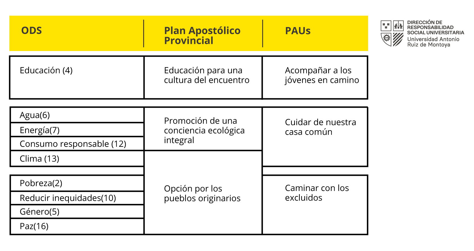 Dada la identidad ignaciana de la UARM y su consiguiente vinculación con la Compañía de Jesús, las líneas de trabajo de la DRSU se alinean también a las preferencias apostólicas establecidas en el Plan Apostólico Provincial del Perú (2022-2029), coherentes y alineadas con los ODS.