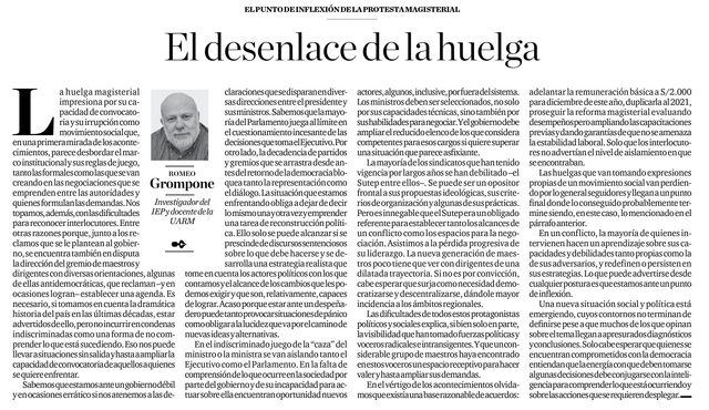 La mayoría de los sindicatos que han tenido vigencia por largos años se han debilitado –el Sutep entre ellos–. Se puede ser un opositor frontal a sus propuestas ideológicas, sus criterios de organización y algunas de sus prácticas. Pero es innegable que el Sutep era un obligado referente para establecer tanto los alcances de un conflicto como los espacios para la negociación. Asistimos a la pérdida progresiva de su liderazgo. La nueva generación de maestros poco tiene que ver con dirigentes de una dilatada trayectoria. Si no es por convicción, cabe esperar que surja como necesidad democratizarse y descentralizarse, dándole mayor incidencia a los ámbitos regionales.