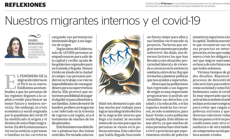 [Artículo] Isabel Berganza: Nuestros migrantes internos y la COVID-19
