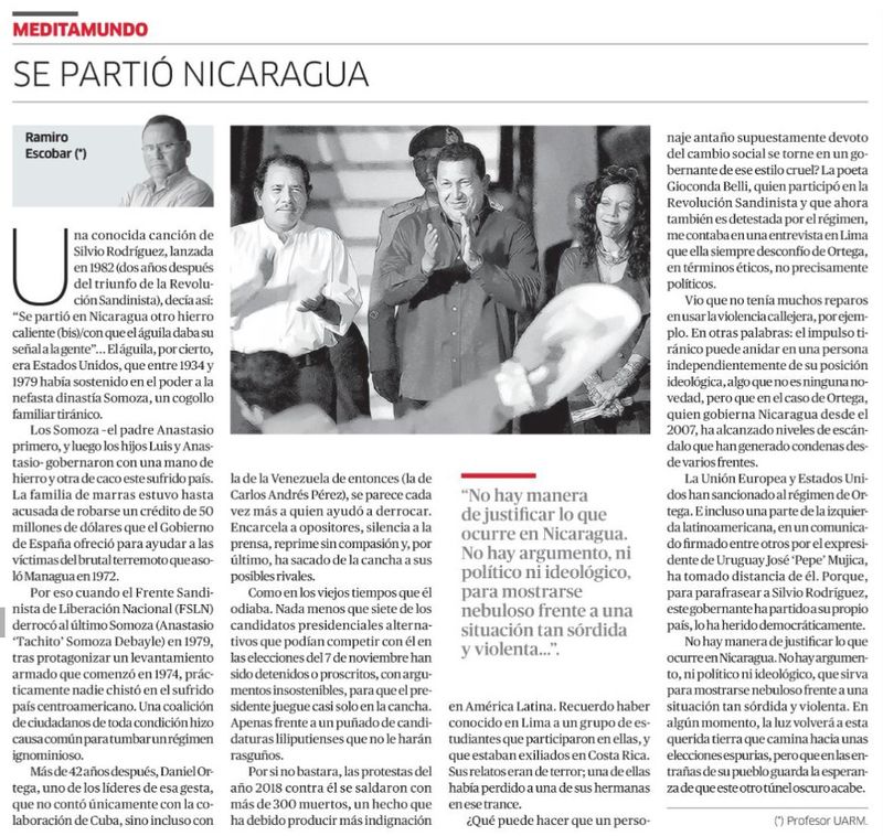 [Artículo – Meditamundo] Ramiro Escobar: Se partió Nicaragua