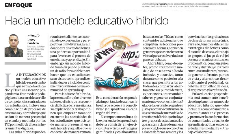 [Artículo] Deivy Cordero: Hacia un modelo educativo hibrido