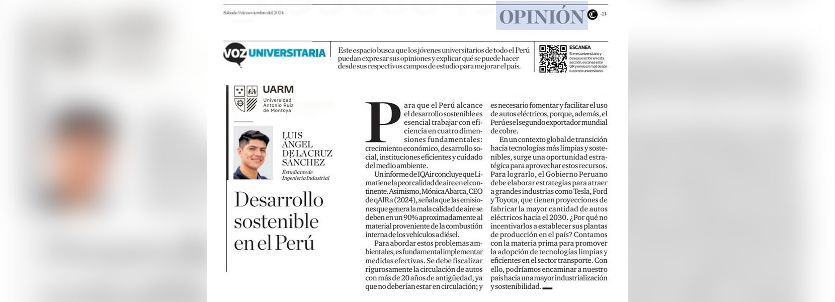 Estudiante de la carrera de Ingeniería Industrial en la Universidad Antonio Ruiz de Montoya (UARM).