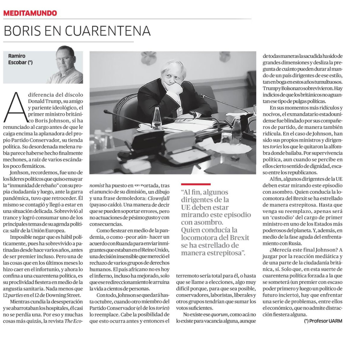 Jonhson, recordemos, fue uno de los líderes políticos que quiso ensayar la “inmunidad de rebaño” con su propia ciudadanía y luego, ante la garra pandémica, tuvo que retroceder. Él mismo se contagió y llegó a estar en una situación delicada. Sobrevivió al trance y logró consumar uno de los principales temas de su agenda política: salir de la Unión Europea.