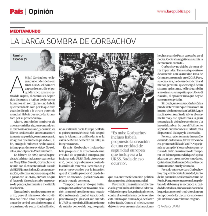 Ahora, cuando los tambores de guerra y misiles siguen sonando en el territorio ucraniano, y cuando los líderes occidentales lamentan contritamente su partida, resulta necesario imaginar qué hubiera pasado si, al fin, en algo le hubieran hecho caso al último presidente soviético. No solo ellos, sino el propio Vladimir Putin.