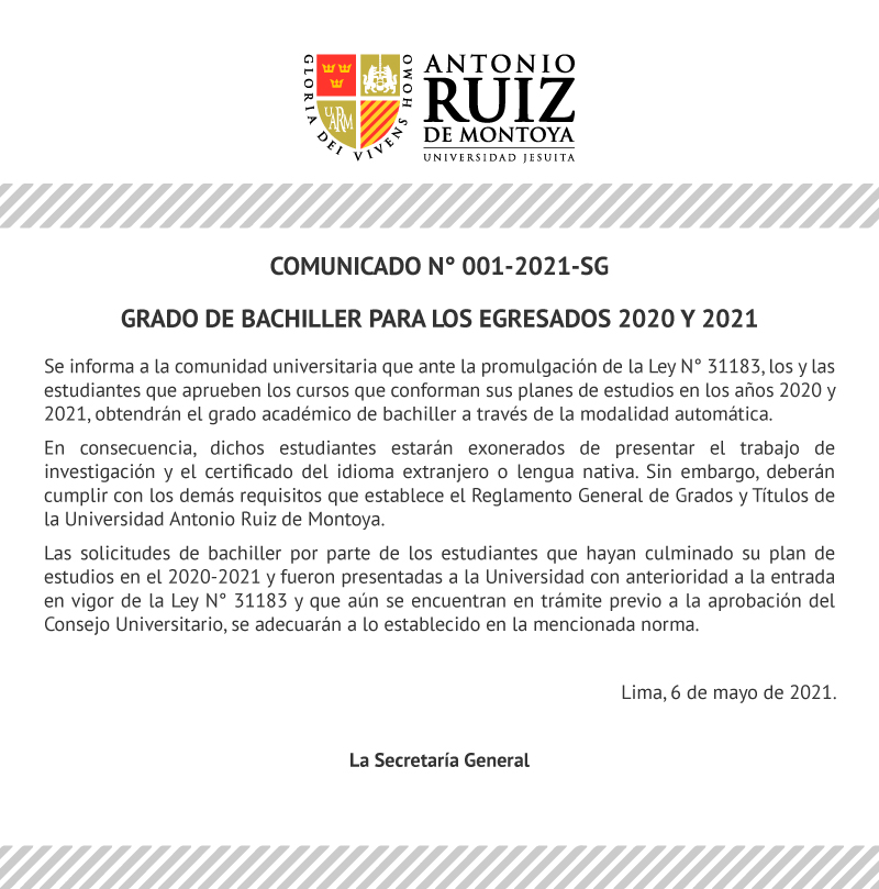 [Comunicado sobre Grado de bachilleres para egresados 2020 y 2021]