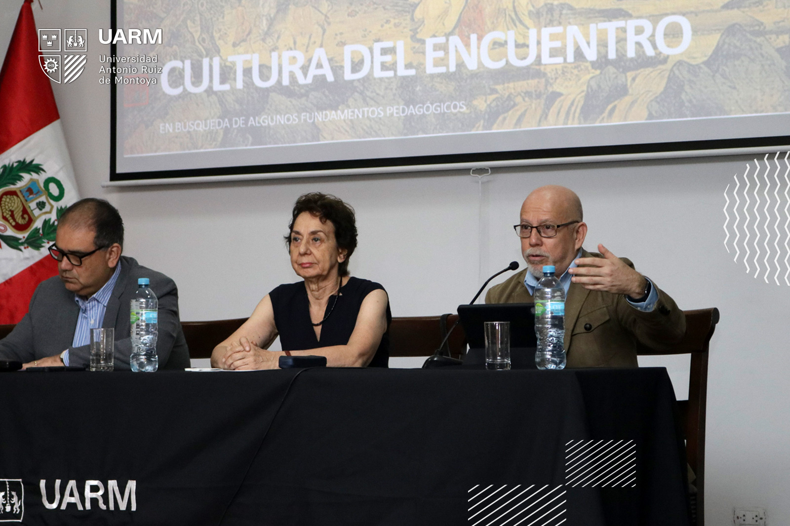 A su turno, el Dr. Joseph Dager destacó que la cultura del encuentro es un tema que atraviesa la propuesta educativa UARM, dado que está encaminada a no huir ni ignorar los conflictos, sino muy, por el contrario, se enfoca en avanzar hacia una sociedad justa y sin exclusiones. En ese sentido, una formación con perspectiva humanista es la mejor forma para lograr una cultura del encuentro y de paz porque proporciona una visión de contexto, amplia el horizonte y fomenta el desarrollo del pensamiento crítico. Enfatizó que el papa Francisco al promover “la cultura del encuentro” lo que hace es invitar a convertirla en un estilo de vida y pone énfasis en la necesidad de aprender a escuchar en lugar de buscar imponer nuestros puntos de vista ¿Estamos preparados para la cultura del encuentro?