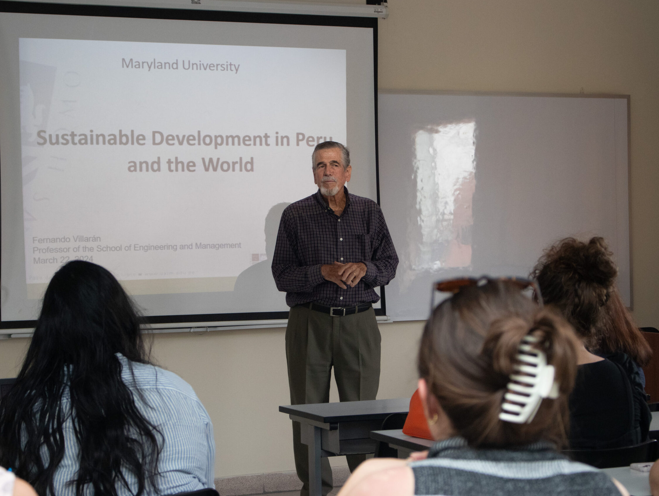 Fernando Villarán, profesor principal de la Facultad de Ingeniería y Gestión de la Universidad Antonio Ruiz de Montoya (UARM), brindó una conferencia a los estudiantes de posgrado de la Universidad de Maryland de Washington. Ello como parte de un programa de posgrado sobre América Latina que incluye un viaje a uno de los países de la región y contempla reuniones con diferentes personas e instituciones, enfocadas en el cuidado ambiental y en la protección de los derechos humanos. El líder de este programa fue el Dr. David Crocker, un filósofo de Maryland. En el caso de la UARM, hace algunos años recibe la visita de esta delegación, con especial interés en escuchar a Fernando Villarán, quien fue fundador del Centro Nacional de Planeamiento Estratégico (CEPLAN) y funcionario del Banco Interamericano de Desarrollo (BID).