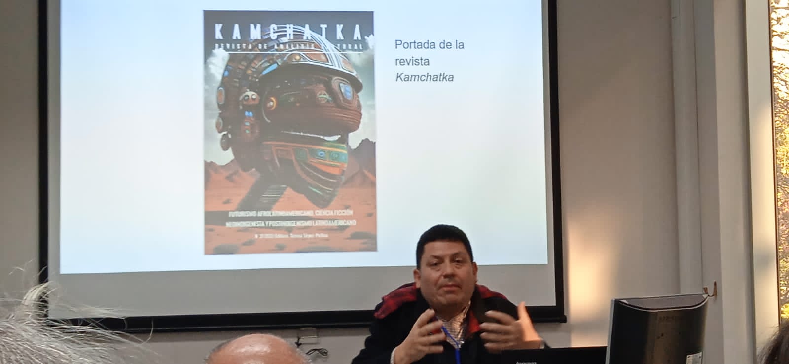 En su presentación, el docente abordó el impacto de su publicación "La alegría centrífuga. Máquinas y corporalidades poshumanas en El zorro de arriba y el zorro de abajo, de José María Arguedas" (2012) y exploró la conexión entre el mundo representado por Arguedas en dicha novela y el debate planteado en la revista Kamchatka (2023) sobre la ciencia ficción neoindigenista y la post-indigenista.