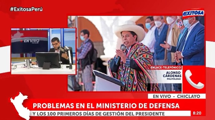 Alonso Cárdenas, docente de la carrera de Ciencia Política de la Universidad Antonio Ruiz de Montoya (UARM), participó en una entrevista para Exitosa TV, sobre los cien días del gobierno de Pedro Castillo. Calificó la gestión como un periodo improvisado de marchas y contramarchas, de no estar preparados para los grandes retos del país. Además, explicó acerca del déficit en la eficiencia técnica del Estado que impide las reformas urgentes.