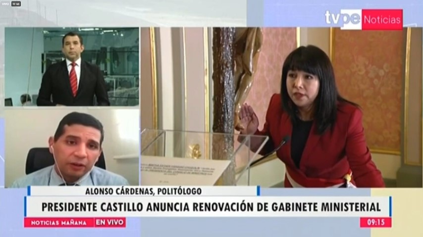 Alonso Cárdenas, docente de la carrera de Ciencia Política de la Universidad Antonio Ruiz de Montoya (UARM), participó en una entrevista en TV Perú acerca de la renuncia del ministro del Interior y de la presidenta del Consejo de Ministros. Indicó que ello denota un grave problema en nuestro sistema de representación política. Recordó que los expresidentes Paniagua tuvieron 1 premier, Toledo y Alan García; 5, con Humala se empieza a deteriorar esa figura, tuvo 7 y Kuczynski; 9 y Castillo tendrá 3 en seis meses de gestión. “Esto se explica por la enorme crisis del sistema de partidos políticos en el Perú. Significa que este sistema no está produciendo los profesionales requeridos para el manejo de la gestión pública”, expresó.