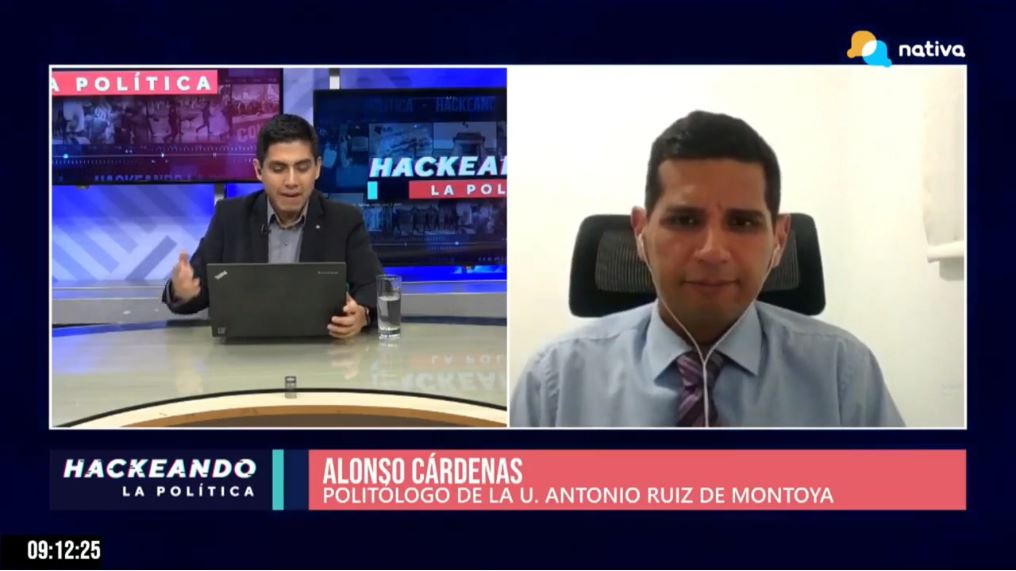 Alonso Cárdenas, docente de la carrera de Ciencia Política de la Universidad Antonio Ruiz de Montoya, participó en una entrevista en Nativa Televisión, en la cual analizó las críticas hacia el presidente Pedro Castillo por el presunto plagio de su tesis para obtener el grado de magister. Lamentó que el tema del plagio está generalizado en nuestras autoridades políticas y propuso que los congresistas hagan publica sus tesis de grado para corroborar si existió plagio o no.