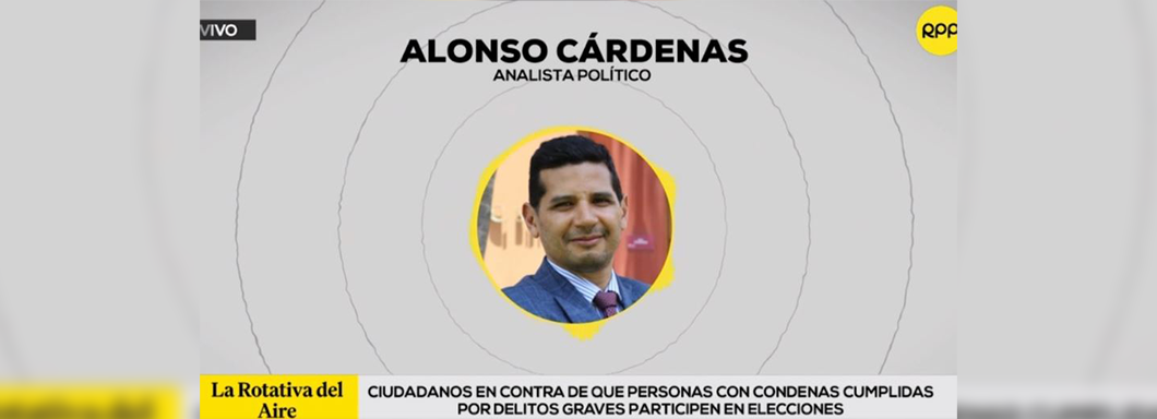 Alonso Cárdenas, coordinador de la Maestría en Ciencia Política con mención en gerencia pública de la Universidad Antonio Ruiz de Montoya (UARM), participó en un informe de RPP El Poder en tus manos sobre el proyecto de ley pendiente de debate en el Congreso, el cual busca limitar la participación en procesos electorales de personas condenadas que ya han cumplido su pena por delitos como terrorismo, homicidio, corrupción, entre otros.