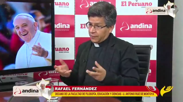Rafael Fernández, SJ, decano de la Facultad de Filosofía, Educación y Ciencias Humanas de la Universidad Antonio Ruiz de Montoya, participó en una entrevista para la Agencia Andina, en la que compartió las principales reflexiones del papa Francisco sobre los pueblos amazónicos, su riqueza cultural y el peligro a los que están sometidos por un modelo económico simplista y reduccionista que en nada protege a la casa común ni a sus habitantes. Y en esa tarea el sumo pontífice convoca no solo a los políticos, sino a todos los peruanos. Exige que escuchemos el mensaje de la naturaleza.