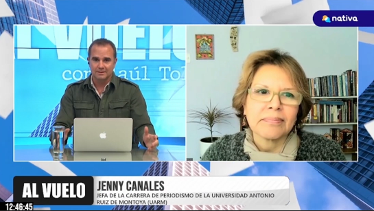 Jenny Canales, jefa de la carrera de Periodismo de la Universidad Antonio Ruiz de Montoya (UARM), en una entrevista con el programa Al Vuelo de Nativa TV, manifestó que el uso de las redes sociales implica una gran responsabilidad ya sea como ciudadano o profesional. “Podemos destruir la vida de personas de manera abierta y sin ninguna repercusión y no tenemos un marco legal amplio que controle esta situación”, indicó.