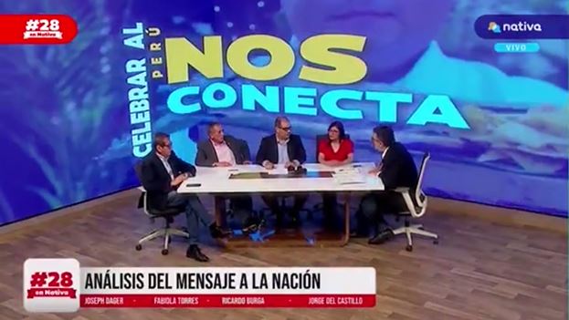 Joseph Dager, vicerrector académico de la Universidad Antonio Ruiz de Montoya (UARM), analizó, vía Nativa TV, el mensaje de la presidenta Dina Boluarte por Fiestas Patrias. Coincidió con otros miembros del panel en la crítica a la extensión del discurso, cuya lectura tomó tres horas. “Preocupa el nivel de eficiencia del gobierno en la comunicación con la ciudadanía, con la que tiene una desconexión. Es muy poco probable que las familias peruanas hayan prestado atención a un discurso así de extenso. Es un gran problema el permanecer encerrado sin escuchar a la población y solo pretender lanzar mensajes y ser escuchados”, expresó.