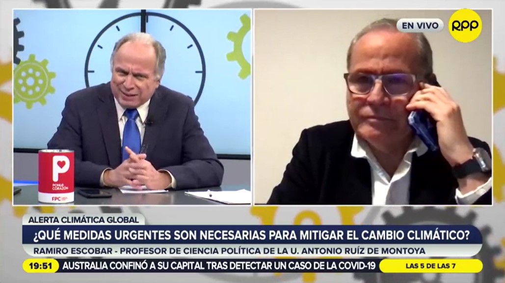 Ramiro Escobar, experto en relaciones internacionales de la carrera de Ciencia Política de la Universidad Antonio Ruiz de Montoya, explicó en RPP TV las principales alertas del VI Informe del Panel Intergubernamental sobre Cambio Climático. “Es una alerta grave. Este panel especializado ha dado cuenta que el nivel del mar se va a incrementar en los siguientes años, ya existe la certeza de ello. Además, que, en las próximas dos décadas, si no se mantiene el aumento de la temperatura global por debajo de 1.1 % los fenómenos naturales como los huracanes, las inundaciones, las zonas de calor, entre otros se presentarán con mayor intensidad”, sostuvo.