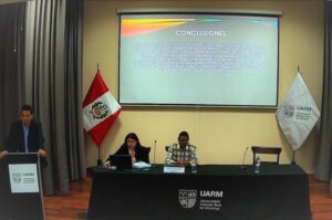 El 23 de noviembre, en el auditorio UARM Jeffrey Klaiber SJ, se realizó la clausura del IX Macrocoloquio de Estudiantes de Ciencia Política, encuentro que promovió la reflexión, el análisis y el diálogo académico sobre tema de relevancia política y también sobre el futuro de esta carrera profesional. Fue organizado por la PUCP, UNFV, UNT, UNMSM y la UARM. Mildred Rooney, jefa de la carrera de Ciencia Política en la Universidad Antonio Ruiz de Montoya (UARM), y Teresa Mayurí, coordinadora general del evento, estuvieron a cargo de las palabras de bienvenida.
