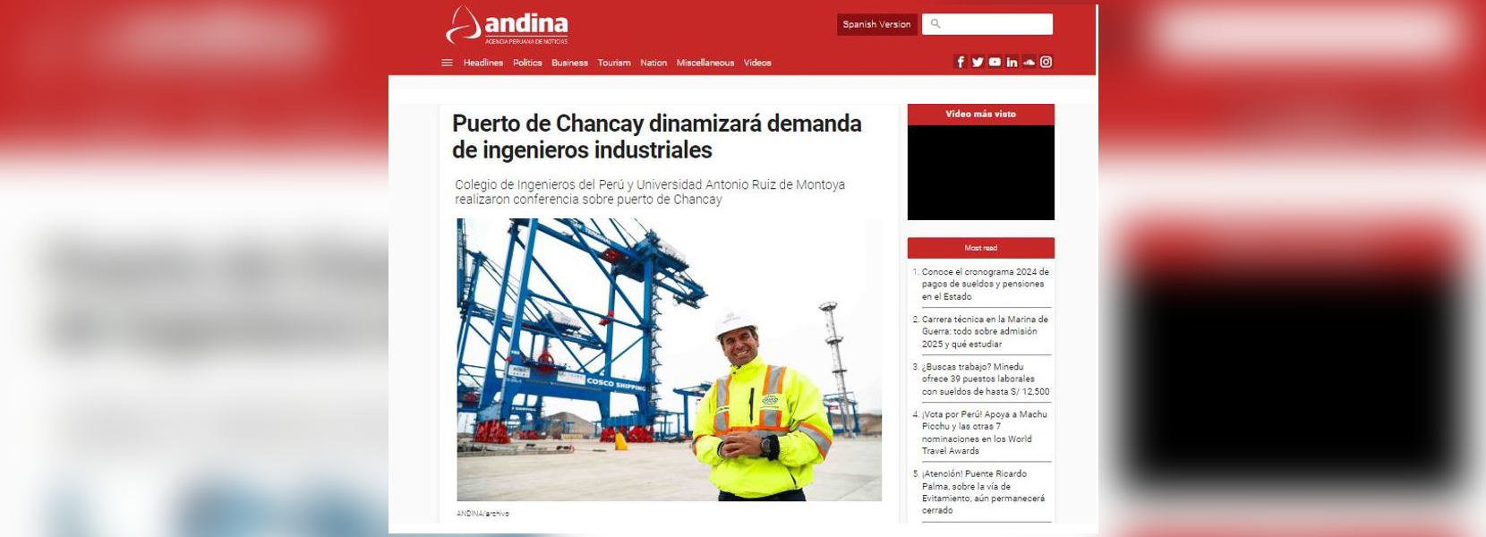En el marco de la conferencia “De la propuesta a la realidad: El puerto de Chancay y su impacto en el desarrollo nacional”, realizada el 7 de octubre, en el campus de la Universidad Antonio Ruiz de Montoya (UARM), la agencia de noticias Andina publicó una nota informativa sobre el aporte de los ingenieros industriales en la optimización de procesos logísticos, la gestión de la cadena de suministro y la implementación de tecnologías avanzadas en el megapuerto.