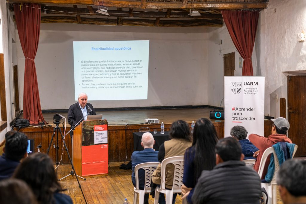 El P. José María Guibert SJ, rector de la Universidad de Deusto (España), estuvo en Perú y brindó la Conferencia: "El liderazgo ignaciano en las obras jesuitas", organizada por la Universidad Antonio Ruiz de Montoya (UARM) el jueves 10 de noviembre, en el Teatrín de la Parroquia de Andahuaylillas, Cusco. Compartió alcances sobre la importancia del liderazgo ignaciano en las obras de la Compañía de Jesús y brindó detalles acerca de las capacidades que demanda ser un líder ignaciano, el cual, lejos de la fría gestión técnica de instituciones tiene que ver con cualidades personales y el trabajo corporativo que contribuyen a la sostenibilidad de las instituciones que enfrentan cada vez contextos más complejos.