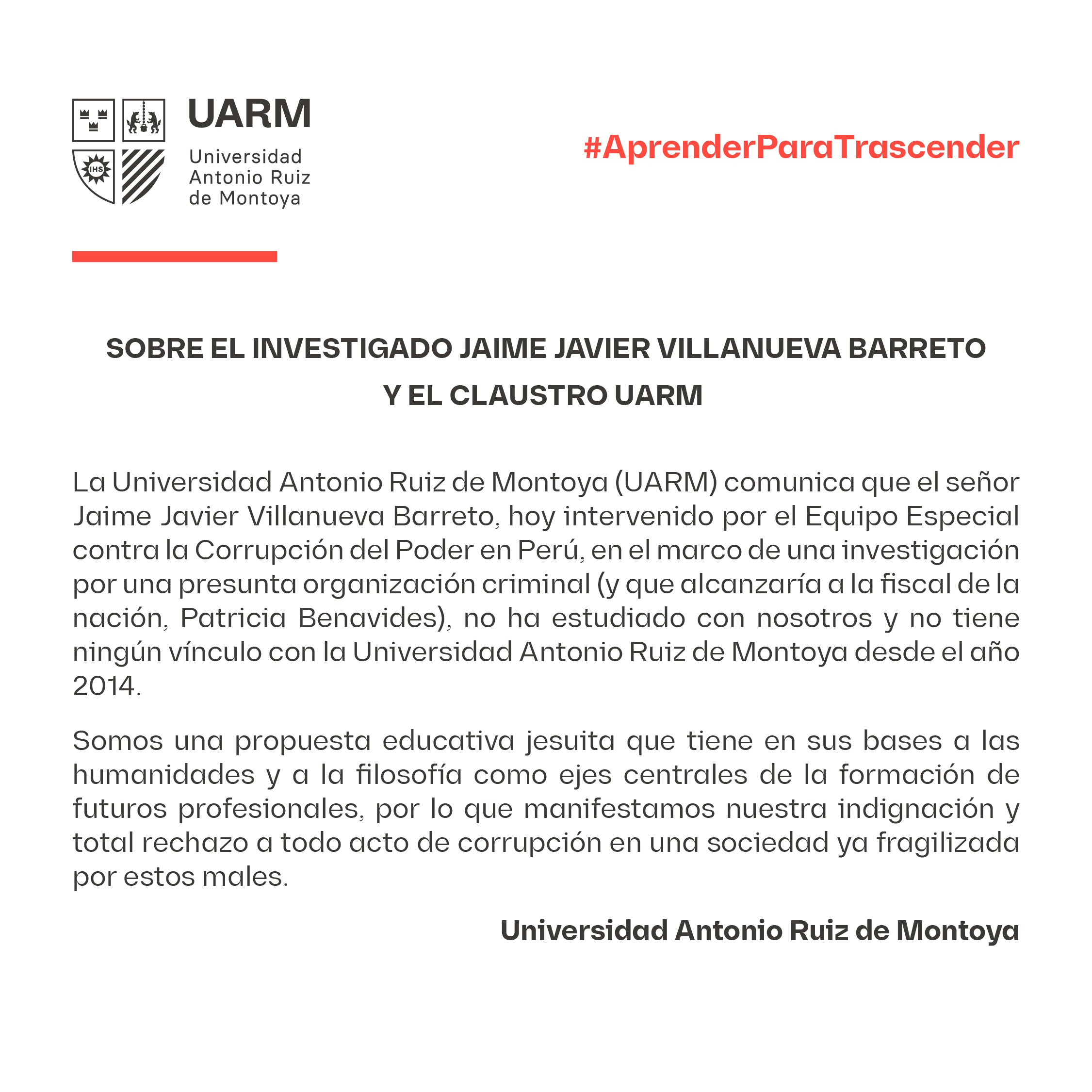 Sobre el investigado Jaime Javier Villanueva Barreto y el claustro UARM