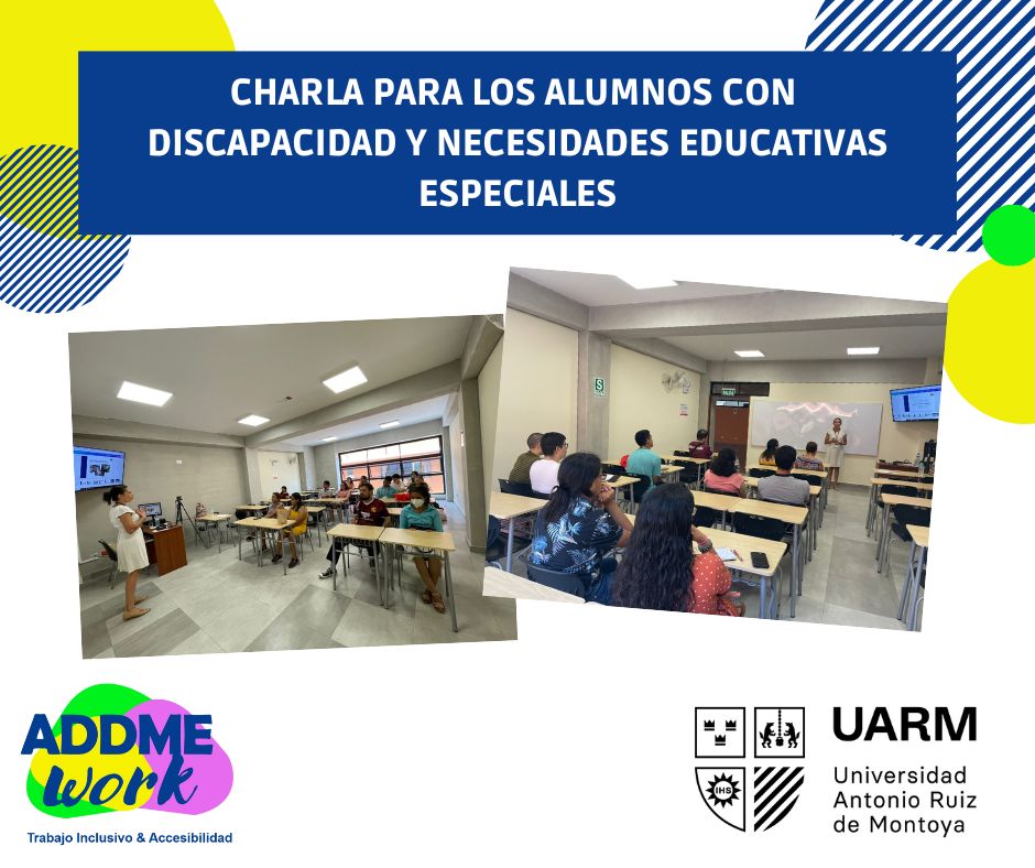 Como una primera acción conjunta, en marzo, se realizó el taller de inducción sobre empleabilidad, dirigido a los alumnos de la UARM con discapacidad y necesidades especiales, para promover y garantizar su inclusión laboral. La capacitación estuvo a cargo de Ximena Rodríguez, directora general de ADDMEWORK. “Los estudiantes se mostraron entusiasmados porque sienten que la universidad realmente es inclusiva, dado que ahora recibirán un servicio de inserción laboral pensado en ellos, donde se les brindará acompañamiento y capacitación especializada brindada por ambas instituciones, así también recibirán información sobre oportunidades laborales acordes a sus condiciones”, expresa Alicia Gallo.