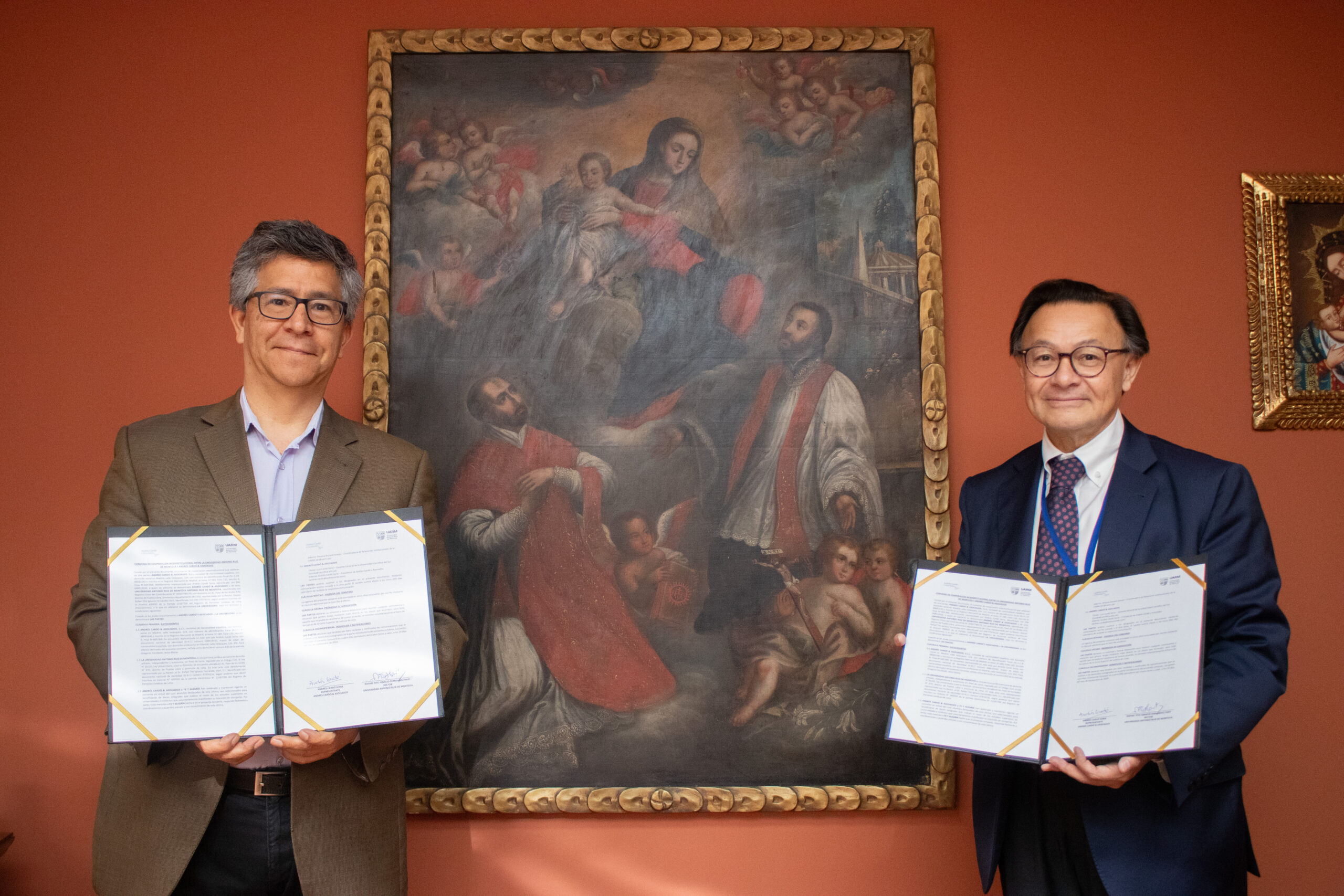 La ceremonia de firma de convenio se realizó el 25 de octubre en el campus con la participación del P. Rafael Fernández Hart SJ, rector, y Andrés Cardó Soria, representante de Andrés Cardó & Asociados. Así también, por parte de la UARM, asistieron José Carlos Paredes, director comercial y de relaciones Institucionales; y Ximena Durand, coordinadora de Relaciones Institucionales.