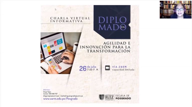 La Escuela de Posgrado de la Universidad Antonio Ruiz de Montoya presentó la charla informativa del Diplomado en Agilidad e Innovación para la Transformación. Participó el especialista Carlos Binasco Pérez, coordinador del programa, quien es magíster en Administración Estratégica de Empresas y especialista en Design Thinking.