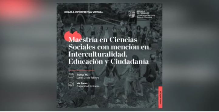 La Escuela de Posgrado de la Universidad Antonio Ruiz de Montoya (UARM) presentó la charla informativa de la Maestría en Ciencias Sociales con mención en Interculturalidad, Educación y Ciudadanía, a cargo del magister Carlos Toledo Gutierrez.