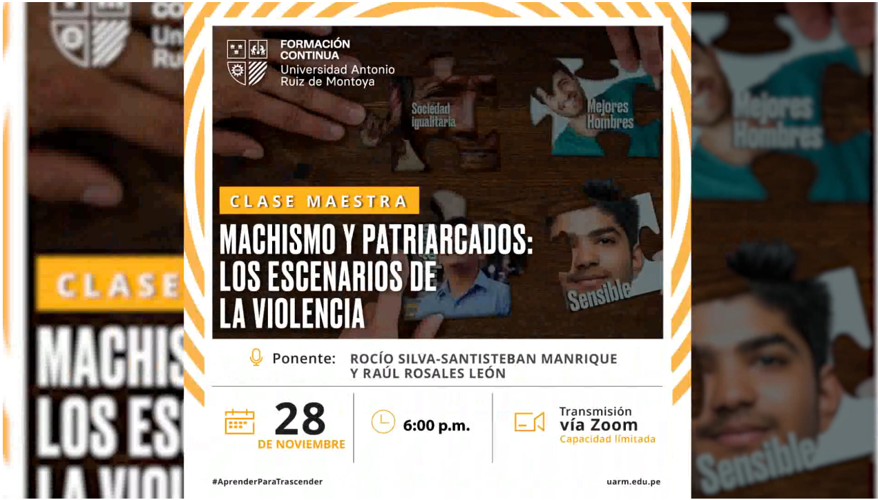 El área de Formación Continua de la Universidad Antonio Ruiz de Montoya realizó la clase maestra Machismo y patriarcados: los escenarios de la violencia, el 28 de noviembre. La ponencia estuvo a cargo de Rocío Silva Santisteban y Raúl Rosales León.