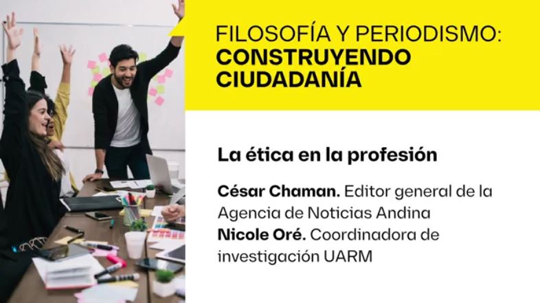 La carrera de Periodismo y Filosofía de la Universidad Antonio Ruiz de Montoya en el marco del ciclo de conversatorios Filosofía y Periodismo: Construyendo ciudadanía, el 11 de mayo presentó "La ética en la profesión" a cargo de Cesar Chaman, editor general de la Agencia de Noticias Andina.