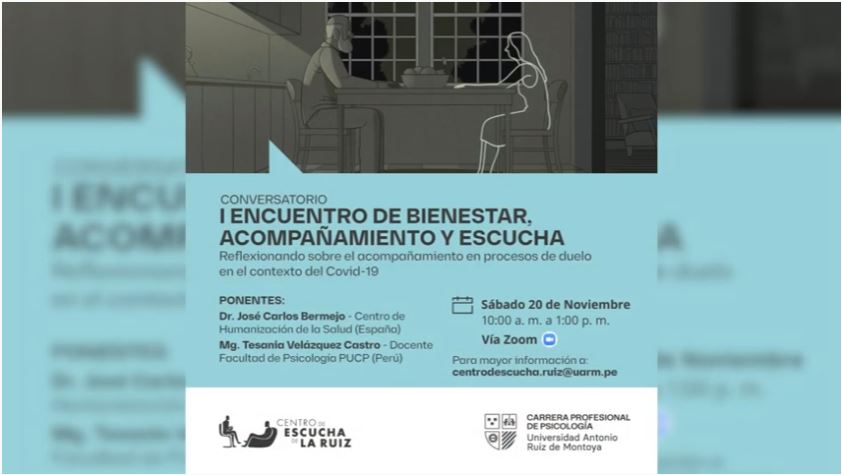 El Centro de Escucha presentó el conversatorio “Primer encuentro de bienestar acompañamiento y escucha”, realizado el 20 de noviembre. En el evento participaron el Dr. José Carlos Bermejo del Centro de Humanización de la Salud (España); y la Mg. Tesania Velásquez Castro, docente de la Facultad de Psicología PUCP (Perú).