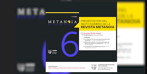 La carrera de Filosofía de la Universidad Antonio Ruiz de Montoya, el jueves 12 de mayo de 2022, realizó la presentación del sexto número de la Revista Metanoia.