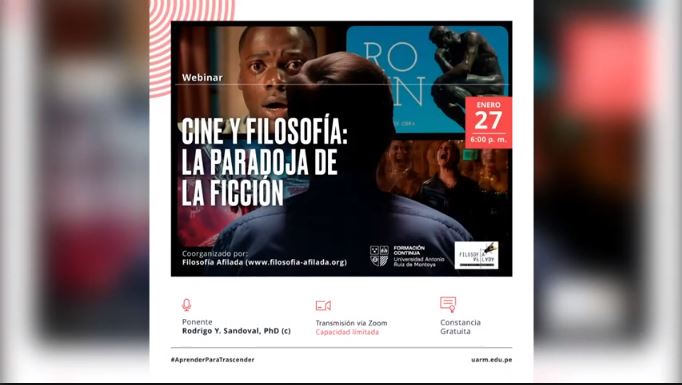 El área de Formación Continua presentó el webinar “Cine y Filosofía: La paradoja de la ficción”, realizado el 27 de enero. En el evento participó como ponente Rodrigo Y. Sandoval, docente del curso Cine, ficción y filosofía.