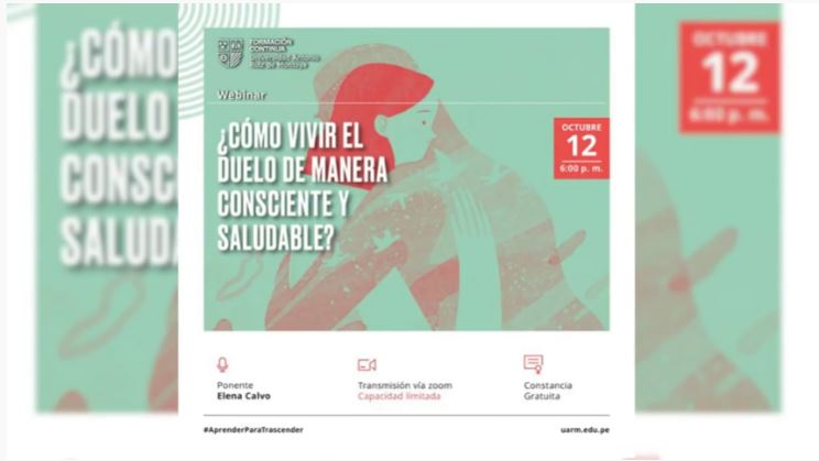El área de Formación Continua presentó el webinar Cómo vivir el duelo de manera consciente y saludable, realizado el 12 de octubre. En el evento participó Elena Calvo.