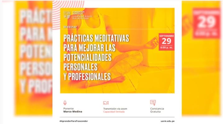 El área de Formación Continua presentó el webinar “Prácticas meditativas para mejorar las potencialidades personales y profesionales”, realizado el 29 de setiembre. En el evento participó Marco Medina.