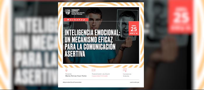 El área de Formación Continua de la Universidad Antonio Ruiz de Montoya realizó el Workshop: Inteligencia emocional, un mecanismo eficaz para la comunicación asertiva, el 25 de abril de 2022. La ponencia estuvo a cargo de María Percaz Four Pome, docente del curso de extensión Inteligencia emocional y comunicación asertiva